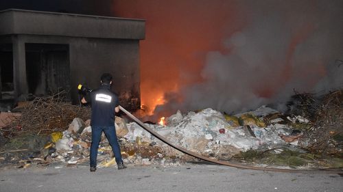 Antalya'nın Kepez ilçesinde atıkların bulunduğu bir arazide çıkan yangına itfaiye ekipleri müdahale ediyor.