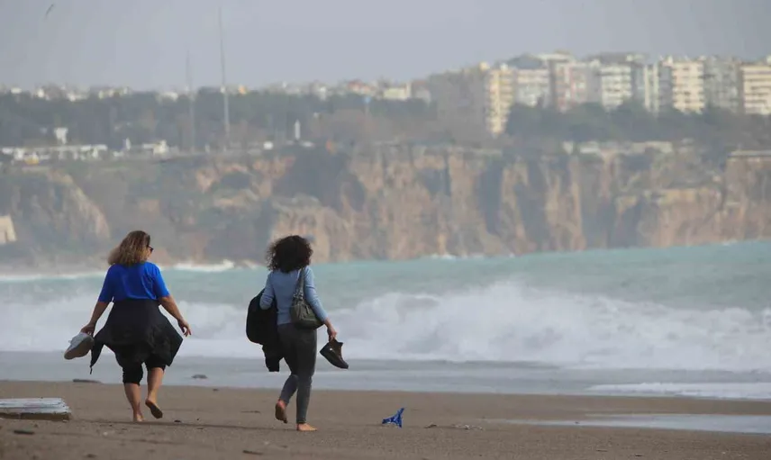 Antalya'da bir haftalık yağışın ardından Konyaaltı Sahili'ne akın
