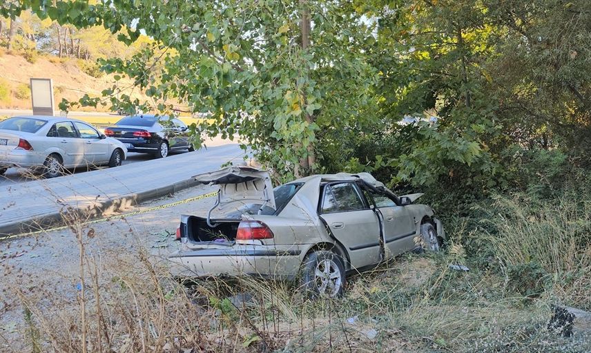 Antalya'nın Manavgat ilçesinde yoldan çıkarak ağaca çarpan otomobilin sürücüsü öldü, 1 kişi yaralandı.