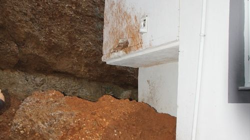 Antalya'nın Serik ilçesinde oluşan heyelanda bir kaya parçası, 2 katlı bir eve çarparak hasara yol açtı.