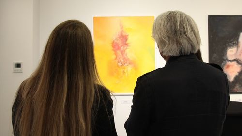 Antalya'da mozaik sanatçısı Nejla Sarı ve ressam kızı Gözde Sarı'nın eserlerinin yer aldığı sergi açıldı.
