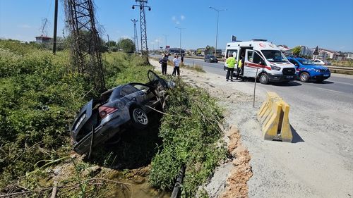 Antalya'da Kanala Devrilen Otomobilde İki Kişi Yaralandı