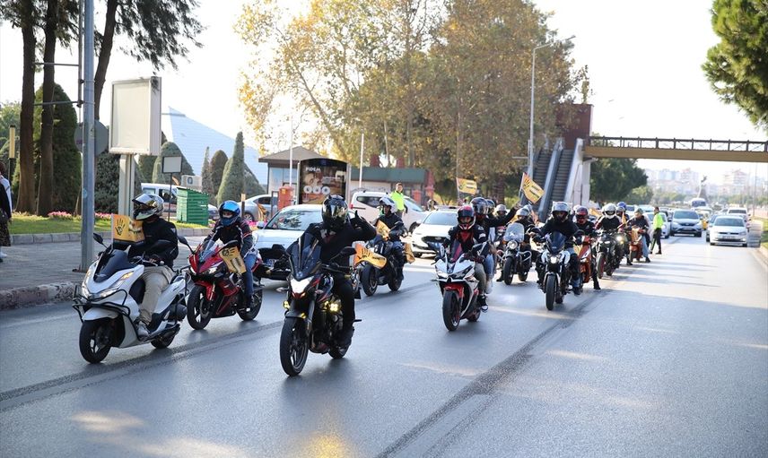 Antalya'da motosiklet sürücüleri, kadına yönelik şiddete dikkati çekmek amacıyla kortej gerçekleştirdi.