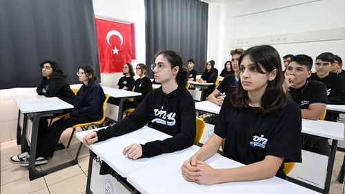Antalya'da öğrenciler, Türkiye'nin insanlı uzay misyonunu anlatan 'Ufkun Ötesinde' belgeselini dikkatle izledi.