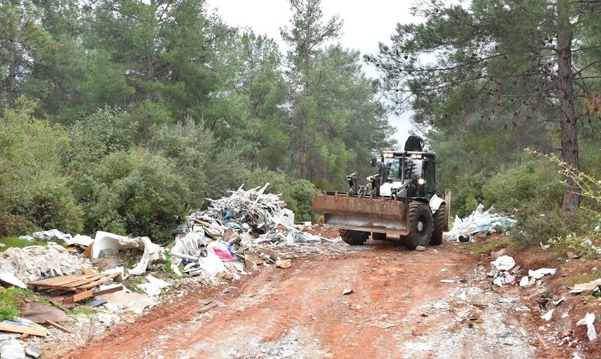 Antalya'da ormanlık alana kaçak dökülen çöp ve moloz belediye ekiplerince temizlendi.