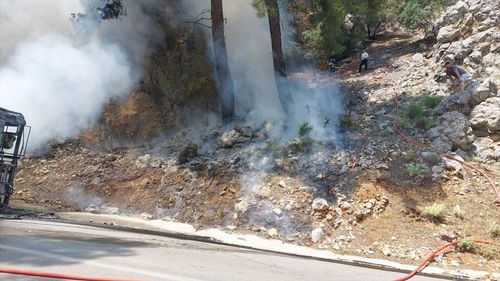 Antalya'da seyir halindeki bir otobüste başlayan yangın, ormana sıçrayarak kontrol altına alındı.