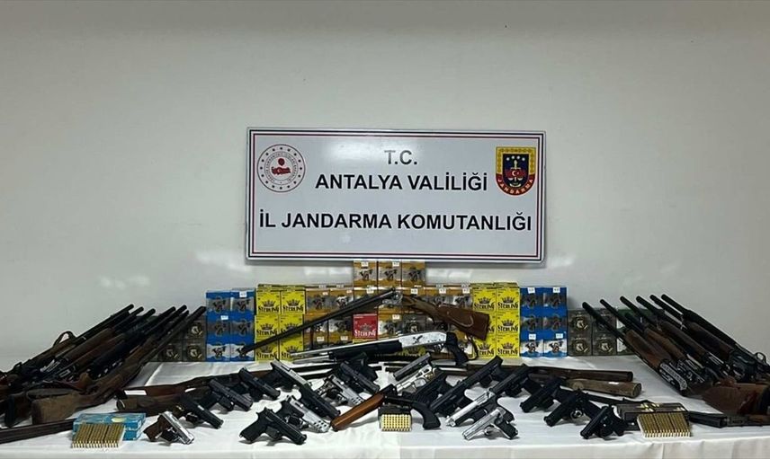 Antalya'nın Aksu ilçesinde düzenlenen ruhsatsız silah operasyonunda 22 kişi gözaltına alındı. Operasyonda 22 tabanca, 19 av tüfeği, 6 bin 181 fişek ve 22 şarjör ele geçirildi.