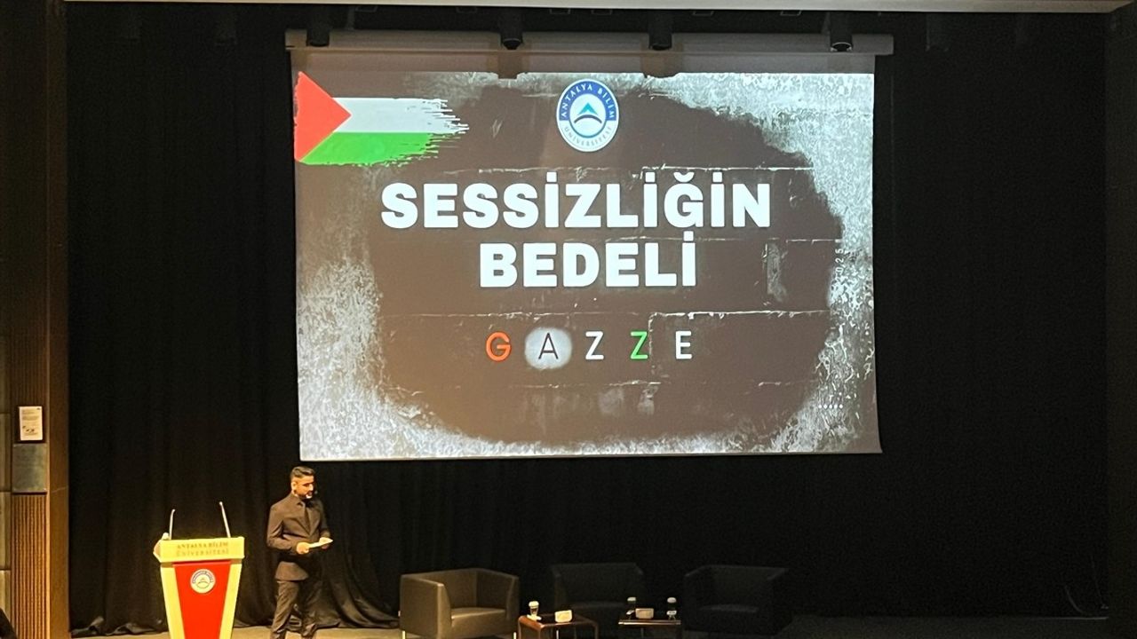 Antalya Bilim Üniversitesi'nde düzenlenen söyleşide Gazze'deki insani dram, medyanın rolü ve sanat camiasının sorumlulukları tartışıldı.