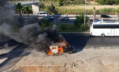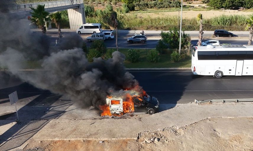 Antalya'nın Manavgat ilçesinde, Çenger Mahallesi'nde D400 kara yolunda seyir halindeki bir VIP minibüs alev aldı. Yangın, minibüsün iç kısmında başlamış ve kısa sürede aracı tamamen sarmıştır.