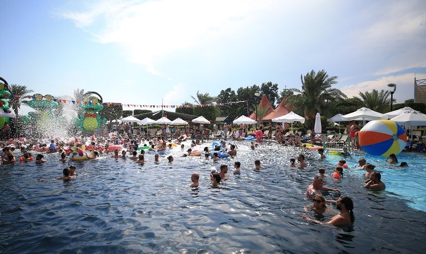 Buzlu meyve ve içecek servislerinin yapıldığı etkinlik, misafirlere keyifli anlar sunuyor. Ayrıca havuz çevresinde düzenlenen çeşitli gösteriler ve köpük partisi gibi aktiviteler, tatilcilerin sıcak havanın etkisini unutturarak eğlenceli bir deneyim yaşamalarını sağlıyor.