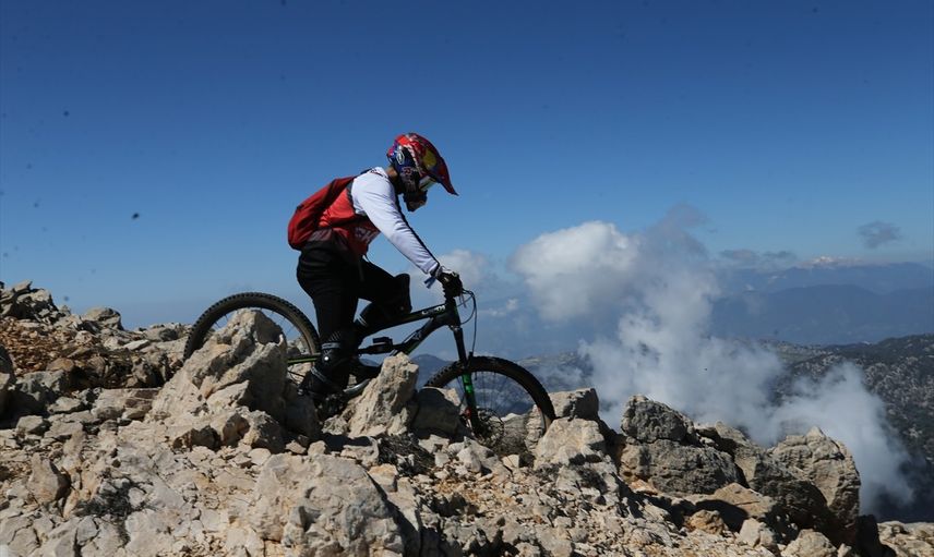 Antalya'nın Kemer ilçesinde bu yıl 3'üncüsü düzenlenen Sky To Sea Dağ Bisikleti Yarışı başladı. Tahtalı Dağı'nın 2 bin 365 metre karlı zirvesinden başlayan yarışmada sporcular, 34 kilometrelik zorlu parkuru geçerek Kemer sahilindeki bitiş çizgisine ulaşmak için mücadele edecek.
