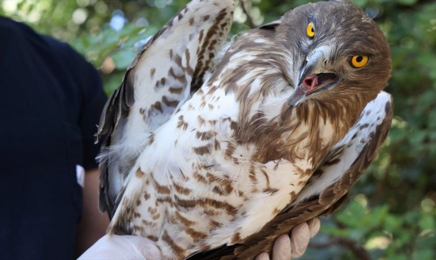 Antalya'da yaralı halde bulunan nesli tükenme tehlikesi altındaki yılan kartalı, Antalya Büyükşehir Belediyesi Doğal Yaşam Parkı'ndaki tedavisinin ardından doğal yaşam alanına bırakılacak.