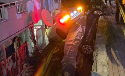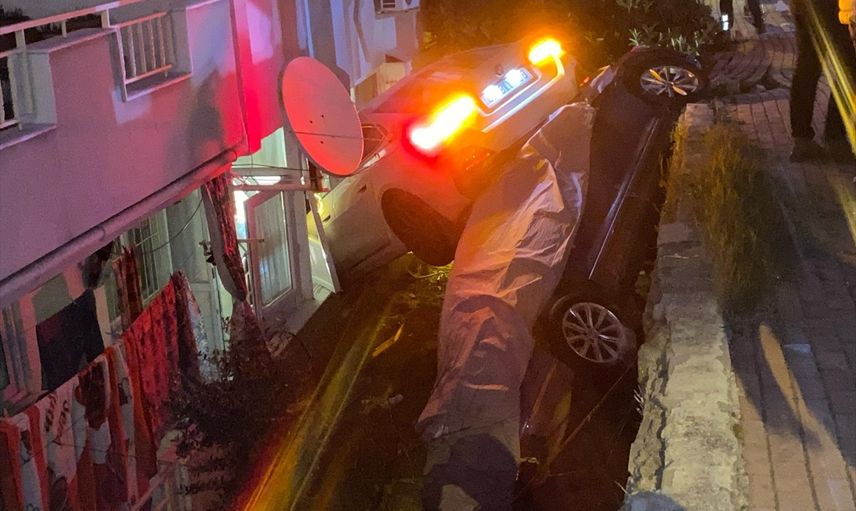 B.S.'nin kullandığı otomobil, önce bir çöp konteynerine çarptı, ardından park halindeki bir araca çarparak yaklaşık 3 metre yükseklikten apartman bahçesine düştü. İtfaiye ve sağlık ekipleri, sürücüyü araçtan çıkararak hastaneye kaldırdı.