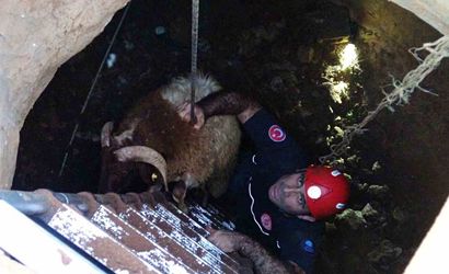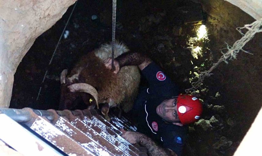 Antalya'da 5 metrelik eski su kuyusunda mahsur kalan koyunlar kurtarıldı