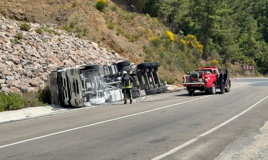 Antalya'nın Gazipaşa ilçesinde, zift yüklü tırın devrilmesi sonucu sürücü ağır yaralandı. Devrilen tırda çıkan yangın, itfaiye ekiplerince söndürüldü.