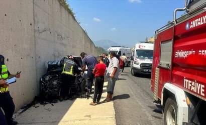 Antalya-Isparta kara yolunda, sürücüsü öğrenilemeyen 19 AAZ 235 plakalı otomobil, seyir halindeki 07 GRP 08 plakalı tırın dorsesine arkadan çarpıp refüje savruldu.