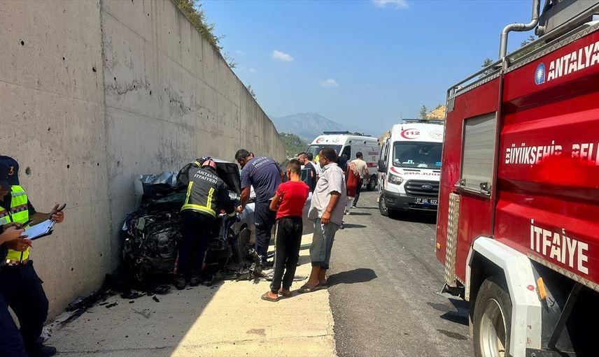 Antalya'da tırın dorsesine çarpan otomobildeki 1'i ağır 3 kişi yaralandı. Ekipler, araçta sıkışan sürücü ve 2 yolcuyu güçlükle çıkardı.