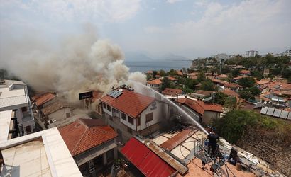Antalya'nın Muratpaşa ilçesindeki tarihi Kaleiçi'ndeki bir otelde başlayan ve yanındaki işletmeye sıçrayan yangına itfaiye ekipleri müdahale ediyor.