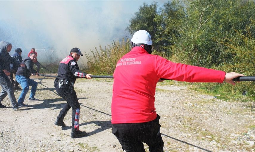 Antalya'nın Kemer ilçesinde ormanlık ve sazlık alanda çıkan yangın söndürüldü. Yangına, Antalya Orman Bölge Müdürlüğü, Büyükşehir Belediyesi İtfaiye Dairesi, İlçe Belediyesi ve Kemer Arama Kurtarma Derneği (KEMKUT) ile polis ekipleri müdahale etti.
