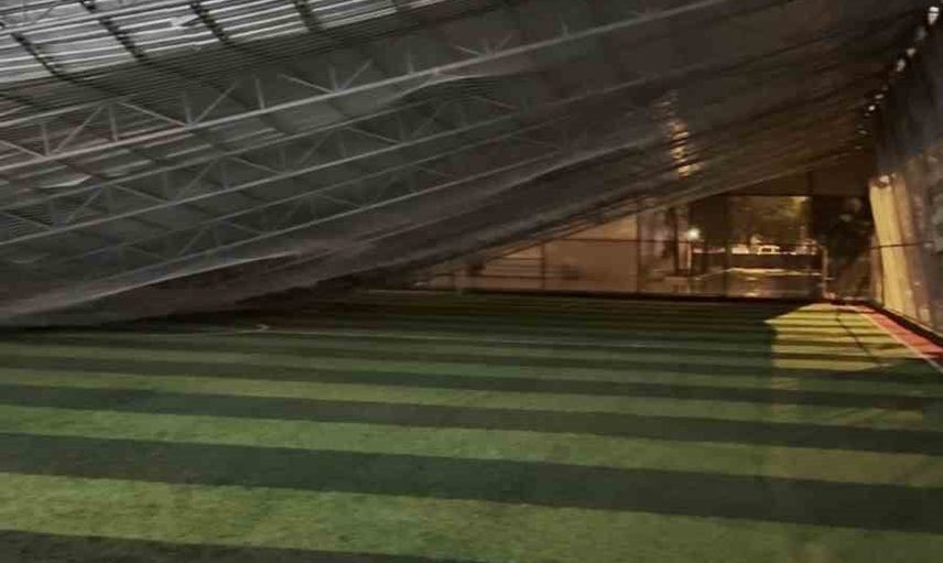 Antalya Kepez'te halı sahanın çatısı fırtına nedeniyle çöktü