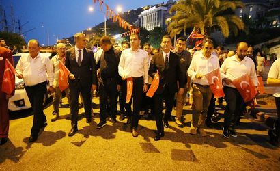 Alanya ilçesinde ise Şelale Meydanı'ndan başlayan kortej yürüyüşü Hükümet Meydanı'nda son buldu. Burada saygı duruşu ve İstiklal Marşı'nın ardından dualar okundu. Alanya Kaymakamı Şakir Öner Öztürk, 15 Temmuz’un ülkenin bütünlüğü için önemli bir sınav olduğunu belirtti.