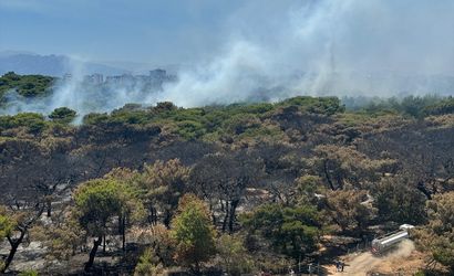 Antalya'nın Muratpaşa ilçesinde çıkan orman yangınına, ekipler havadan ve karadan müdahale ediyor.