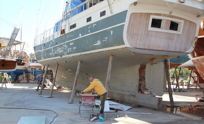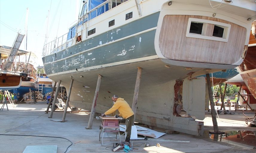 Her yıl binlerce yerli ve yabancı turisti ağırlayan Kaş'ta, liman ve marinada karaya çekilen yaklaşık 450 teknede bakım çalışmaları devam ediyor. Boyları 15 ila 30 metre arasında değişen bu teknelerin, bakım süreçleri ustalar tarafından titizlikle yürütülüyor. Öncelikle, yatların alt bölümleri tazyikli su ile temizlenirken, eski boyalar kazınıyor ve çürüyen ahşap kısımlar yenileriyle değiştirilmekte. Yatların alt bölümlerinde yapılan kalafatlama işlemi ile tahta araları pamuk ile kapatılıyor. Ardından, bu bölümlere astar ve yağlı boya uygulanarak yatlar pırıl pırıl hale getiriliyor.