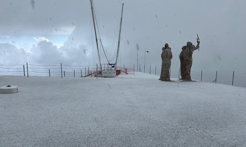 Antalya'nın Kemer ilçesinde bulunan Tahtalı Dağı'nın zirvesinde öğle saatlerinde etkili olan karla karışık dolu, 2.365 metre yükseklikteki zirveyi beyaza bürüdü. Kar yağışının başlangıcı, bazı ziyaretçiler için sürpriz olsa da, bu doğa olayı kartpostallık manzaraların oluşmasına neden oldu.