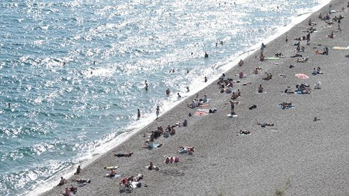 Antalya'da sıcak hava, sahillerde yoğunluk yarattı. Deniz keyfi için kente akın edenler, serinlemeye çalışıyor.