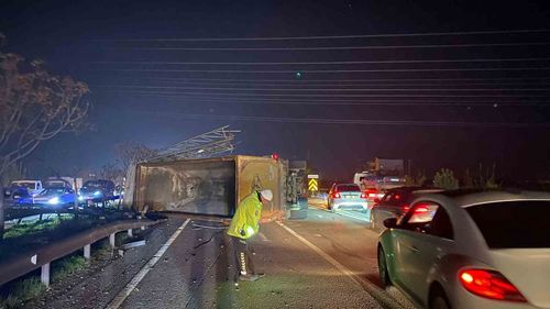 Antalya Serik'te dorsesi EDS direğine çarpan 07 BHY 234 plakalı tır devrildi; 1'i ağır 2 kişi yaralandı. Olayla ilgili inceleme sürüyor.
