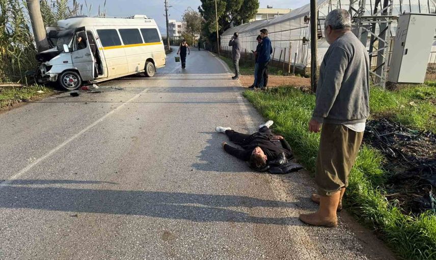 Antalya Serik'te minibüs elektrik direğine çarptı: 2 yolcu yaralandı, 1'i ağır