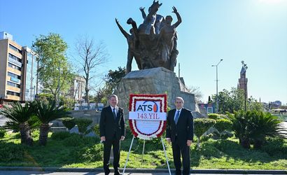 Antalya Ticaret ve Sanayi Odasının (ATSO) kuruluşunun 143'üncü yıl dönümü törenle kutlandı. ATSO Yönetim Kurulu Başkanı Yusuf Hacısüleyman (sağda), Meclis Başkanı Ahmet Öztürk (solda) ile beraberindeki heyet, Cumhuriyet Meydanı'nda Atatürk Anıtı'na çelenk bıraktı.