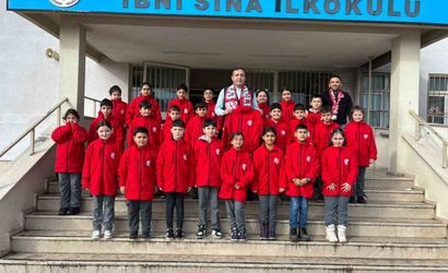 Antalyaspor yönetimi, Tekirdağ'ın Kapaklı ilçesindeki İbni Sina İlkokulu öğrencilerine polar ve atkı hediye etti.