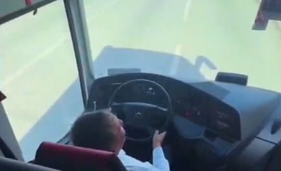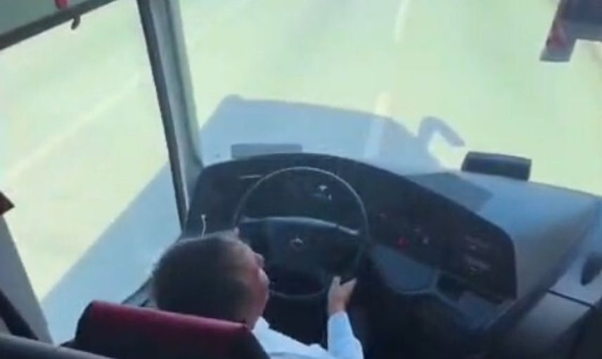Otobüs şoförünün koltuğundan kalkıp oynadığı görüntüler paylaşıldı