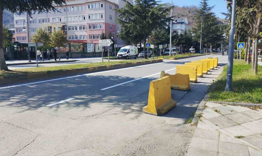 Araklı'da 15 Temmuz'dan kalan beton bloklar trafik akışını zorluyor