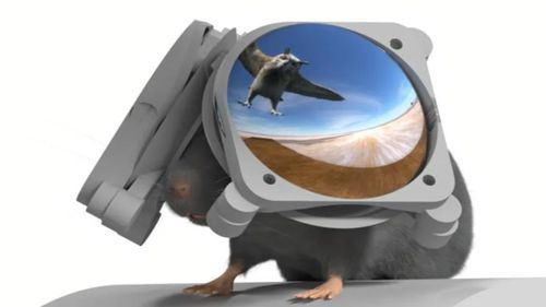 Northwestern Üniversitesi'nden bir ekip, farelerin yüzüne ve vücudunun büyük bir kısmına takılabilen küçük VR gözlükleri geliştirdi. Böylece, ilk defa farelere yukarıdan gelebilen tehditleri simüle edebildiler ve bu sırada farelerin beyin aktivitelerini haritalandırdılar.