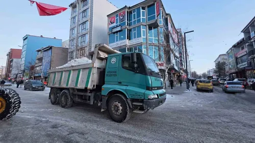 Ardahan'da üç günlük yoğun kar yağışının ardından belediye ekipleri ana arterler, mahalle yolları, kaldırımlar ve kamu kurumları çevresinde kar temizleme ve tuzlama çalışması yürütüyor.