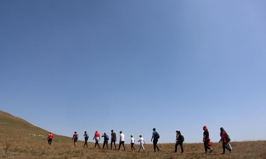 Merkez Halil Efendi Mahallesi'ne ulaşan 14 kişilik doğasever grup, Ramazan Tabyası'na ulaşmak için hazırlıklarını tamamladı. Genç ve çocuklardan oluşan katılımcılar, zirveye uzanan parkuru tamamlayarak 2 bin 143 rakımlı zirveye kadar ilerledi ve 7 kilometrelik yürüyüşü tamamladı.