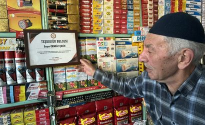 Ardahan Ticaret ve Sanayi Odası, raflarındaki düzeni dolayısıyla örnek olduğu için 75 yaşındaki esnaf Cengiz Çelik'e teşekkür belgesi verdi.