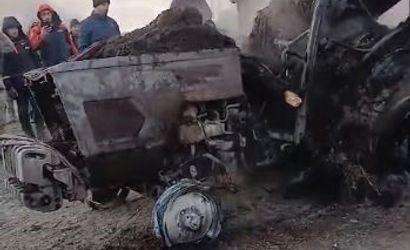 ARDAHAN'DA BİR AHIRDA ÇIKAN YANGIN SONUCU 2 TRAKTÖR, TAHIL AMBARI VE BALYA MAKİNASI KÜLE DÖNDÜ.