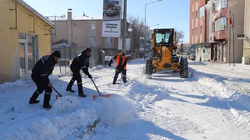Ardahan Belediyesi ekipleri, Fen İşleri ve Destek Hizmetleri Müdürlüğü koordinasyonunda iş makineleriyle kent genelinde kesintisiz kar temizliği yapıyor.
