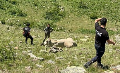 Ardahan'da kayalıklardan düşen büyükbaş hayvan, Afet ve Acil Durum Müdürlüğü (AFAD) ekiplerince kurtarıldı.