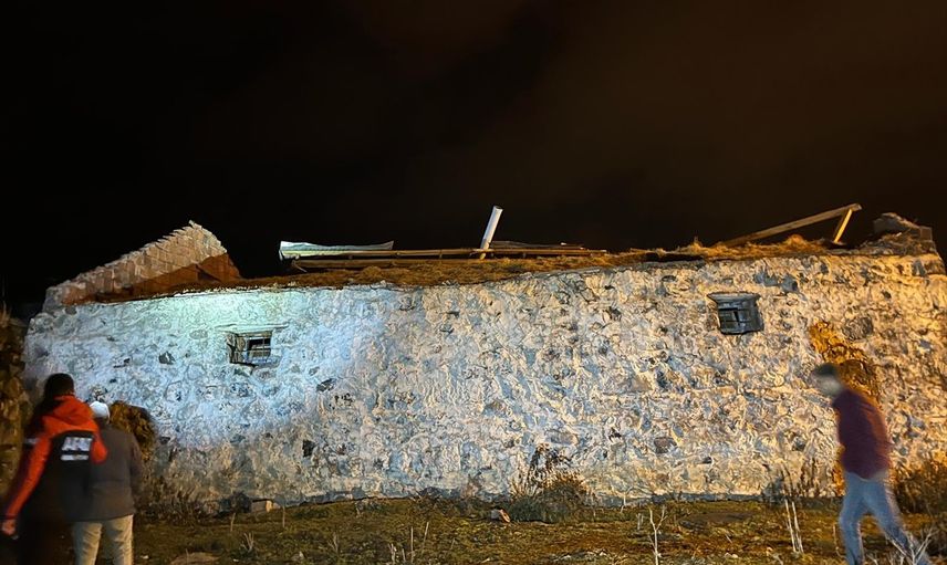 Ardahan'da etkili olan fırtına nedeniyle bazı evler ve ahırların çatısı uçtu.