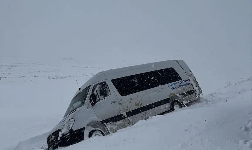 Ardahan'da jandarma ekipleri kara saplanan minibüsteki 11 yolcuyu kurtardı