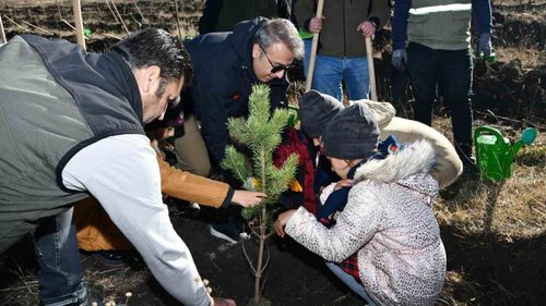 Ardahan'da 11 Kasım Milli Ağaçlandırma Günü'nde öğrenciler, Vali Hayrettin Çiçek ile İl Milli Eğitim Müdürlüğü Öğrenci Hatıra Ormanı'nda fidan dikti.