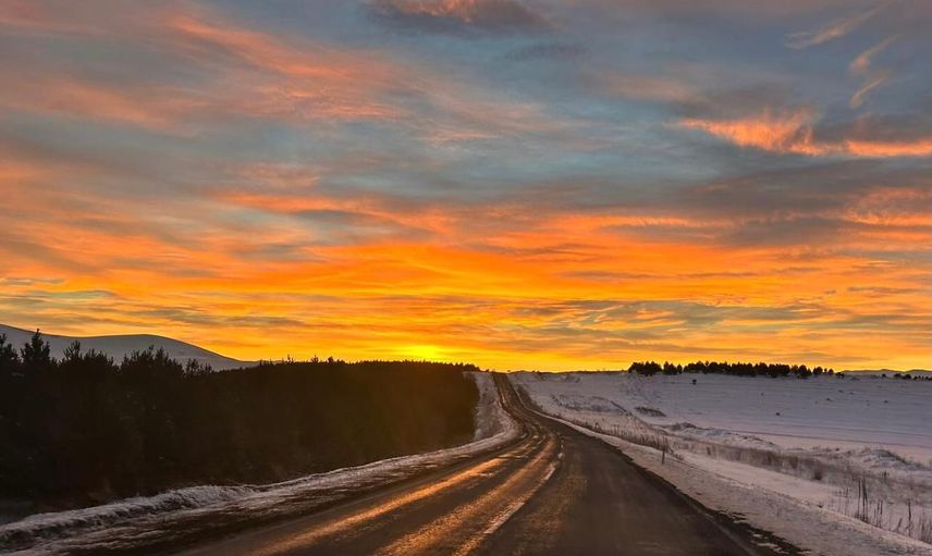 Ardahan’ın Damal ilçesinde sabahın ilk ışıklarıyla birlikte gökyüzü yoğun bir kırmızı tonuna bürünerek izleyenlere etkileyici bir manzara sundu.