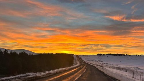 Ardahan'ın Damal ilçesinde gün doğumuyla gökyüzü kızıla büründü; Ardahan-Damal kara yolundaki sürücüler fotoğraf ve görüntü çekti.