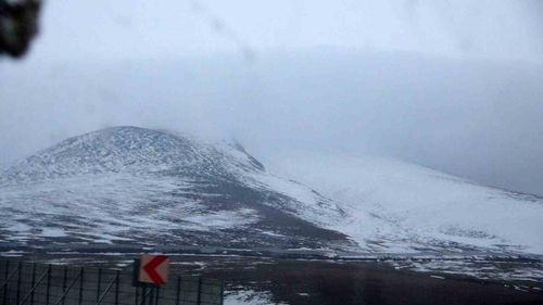 Ardahan'da gece sağanak, yüksek kesimlerde kara dönüştü; Ardahan-Şavşat kara yolunun Sahara geçidinin etekleri beyaza büründü.
