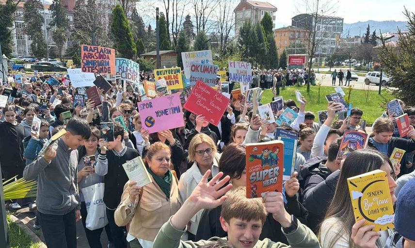 ARHAVİ’DE BU KEZ PROTESTO YÜRÜYÜŞÜ DEĞİL, KİTAP OKUMA FARKINDALIĞI İÇİN BİNLERCE KİŞİ KİTAPLARLA YÜRÜDÜ.