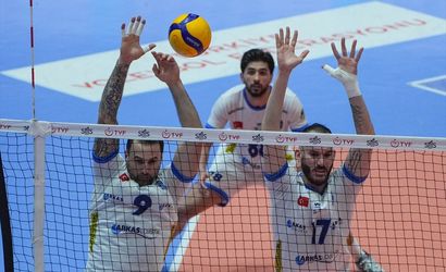 SMS Grup Efeler Ligi play-off 3/4 etabı ikinci maçında Arkas Spor ile Fenerbahçe Medicana karşılaştı. Bir pozisyonda Arkas Spor'dan Gyorge Grozer (9) rakipleriyle mücadele etti.